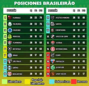 Flamengo (campeón), Palmeiras, Cruzeiro, Mirassol y Fluminense clasificaron directamente a la fase de grupos. El «Flu»del llanero Soteldo pudo en los últimos juegos superar al Botafogo para quedarse con la quinta plaza. El vinotinto fue vital en la recta final; luego de ser criticado ampliamente por un bajón futbolístico, Soteldo recuperó el nivel de juego, e incluso marcó doblete en un triufo clave ante el Gremio para conseguir el cupo a Libertadores.