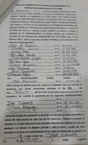«Esa acta es totalmente falsa porque no se llamó a una asamblea tal como lo estipulan los estatutos. La señora Shamira Valero aparece firmando sabiendo que ella no tiene ningun atleta y los estatutos rezan que tienen que ser entrenadores activos en los ultimos 6 meses, aparte hay 3 enttenadores más que no son activos y existen firmas falsas entre ellas la de Rodrigo Lopez del Club Rodrigo López que él mismo denunció y firmó una declaracion jurada donde le utilizan su firma».