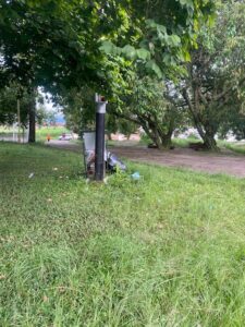 Es un momento crítico; la maleza supera los 30 centímetros, sus caminerías están llenas de monte facilitando que las posturas de las mascotas queden escondidas y sean presa fácil de las pisadas de los caminantes. Los columpios y aparatos de ejercitación están en mal estado, las bancas de sentarse colapsadas, ya sea por deterioro o vandalismo.