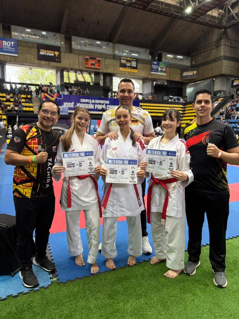En la modalidad por equipos, la representación masculina integrada por Andrés Castro, Gabriel Cáceres y Daniel Galviz logró su clasificación tras competir en kata por equipos. El equipo femenino de kumite, conformado por Fabiana Cardozo, Annabella Acevedo y Anthonella Jordan también obtuvo su cupo para los JDNJ 2026.
