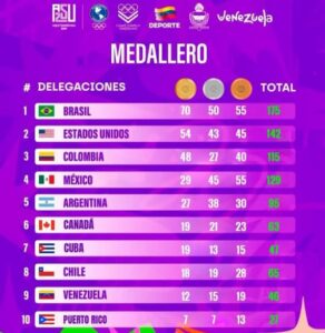 Ahora bien, si hacemos un ligero repaso del cuadro de medallas de esos primeros juegos panamericanos junior, podemos observar, en primera instancia que Colombia nos sigue superando ampliamente con 48 medallas de oro, 34 de plata y 63 de bronce para un total de 149 medallas y un 2º lugar en la clasificación general. Pero, la segunda señal de alarma fue que, Ecuador, y Chile que intervienen en los juegos bolivarianos ¡¡¡También nos superaron!!!, Perú quedó a una medalla de oro y Republica Dominicana a dos medallas de oro.