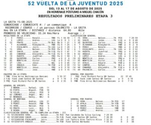 LA GRITA. (Especial). – Se cumplió la tercera etapa de la edición 52 de la Vuelta de la Juventud que llevó a la serpenteante caravana desde Coloncito, capital del municipio Panamericano, a La Grita, la ciudad «Atenas del Táchira» específicamente al Santuario del Santo Cristo, donde consiguió la victoria el pedalista Ronald Pérez, del Club Venezuela País de Futuro, registrando en la raya de meta un tiempo de una horas 56 minutos 59 segundos.
