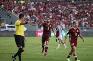 Esto le dio mayores libertades al 9 venezola que al minuto 65 llegó al gol con un cabezazo a centro de Yeferson Soteldo con el que aumentó su récord como máximo goleador histórico de la Vinotinto, al alcanzar 45 anotaciones.